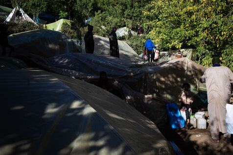 For this report, I had the opportunity to follow a group of 4 young men who came on their own initiative, bringing thermal tarpaulins and solar lights. In the makeshift camps, without lights, they depend once night falls on telephones whose batteries are precious. Light becomes a precious resource, especially as the sun sets early in the mountains and winter approaches.