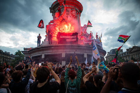 Manifestation contre l extreme droite (RN) organise a l appel du Front Populaire, Place de la Republique a Paris. Cette manifestation fait suite au premier tour des élections legislatives provoque par le President et a score important de l extreme droite.