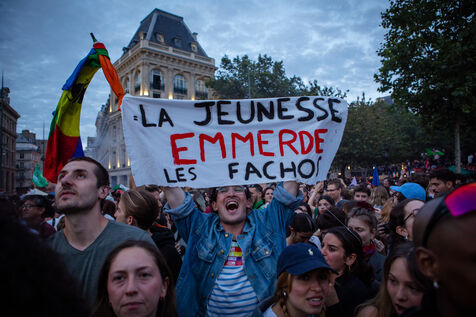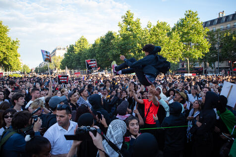 Rassemblement Place de la Republique suite aux resultats du second tour des elections legislatives a l'appel du Nouveau Front Populaire.