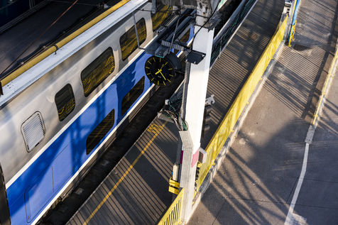 Illustration de voies ferroviaires, de trains et de gares de la SNCF et de la RATP.
