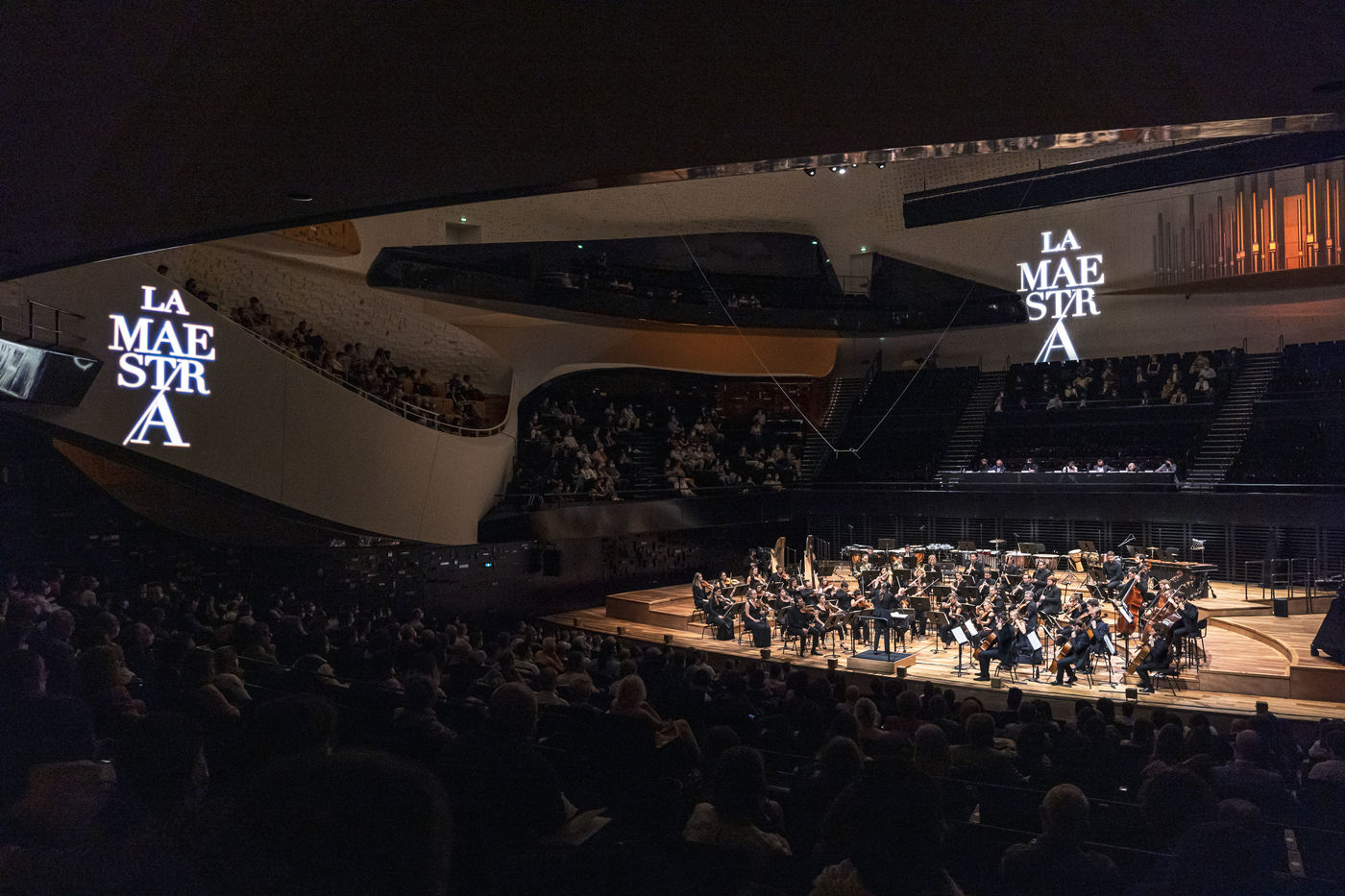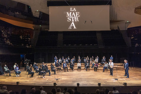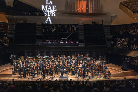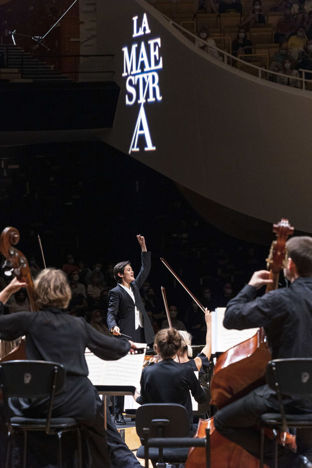 La Maestra, 1ère édition du Concours International de Cheffes d'Orchestre à la Philharmonie de Paris, codirigé par Claire Gibault (directrice artistique et musicale du Paris Mozart Orchestra) et Laurent Bayle (directeur général de la Philharmonie de Paris).
