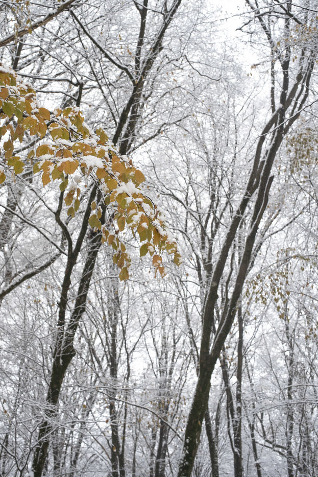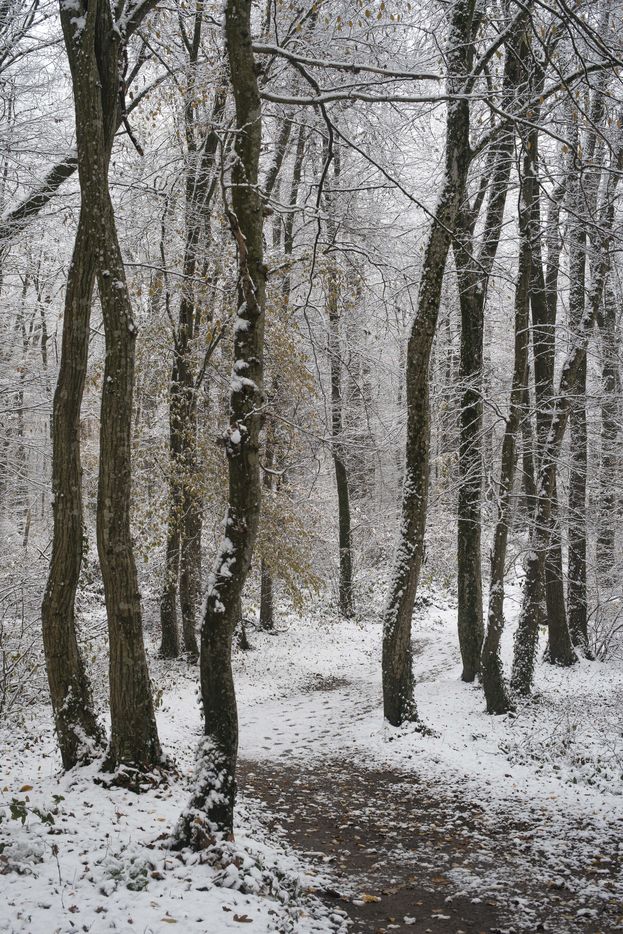 The first snowfall on December 1st in a forest of Haute Saône, Bourgogne-Franche Comté.