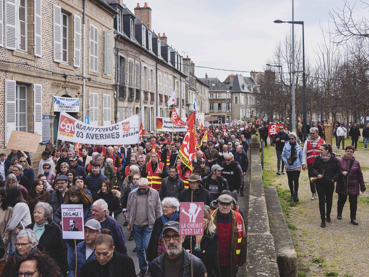 France, Moulins, 2023-03-28. Dixième journée de mobilisation contre la réforme des retraites à Moulins (Allier), au centre de la France.