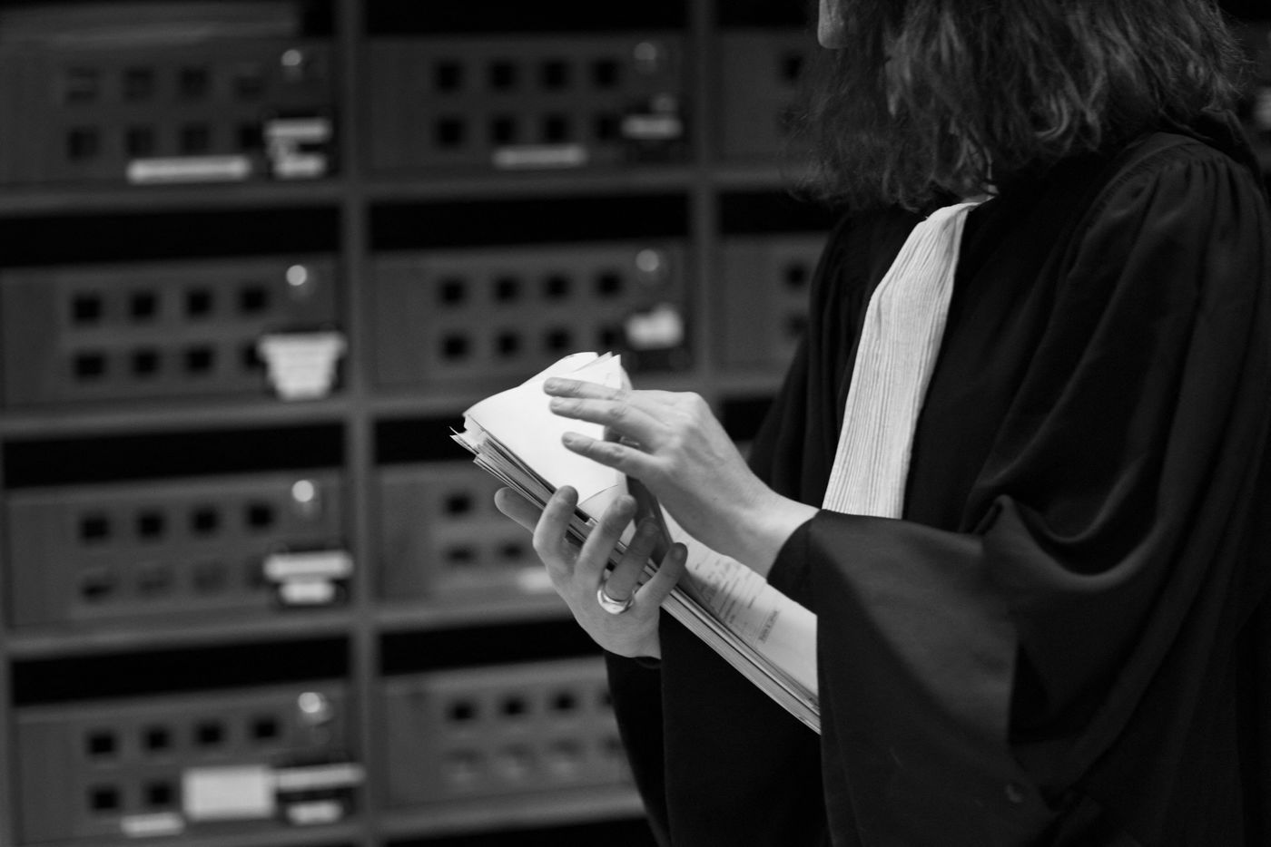 This work was carried out for an order from "L'Ordre des avocats de Clermont-Ferrand" which wanted to show other aspects of the profession of lawyer, far from stereotypes. The idea was not to tell the lives of a few lawyers, nor to make a documentary, but to point to a closer reality of the profession through intimate reporting images and illustrations on the symbols of the profession, such as Lawyer's dress.