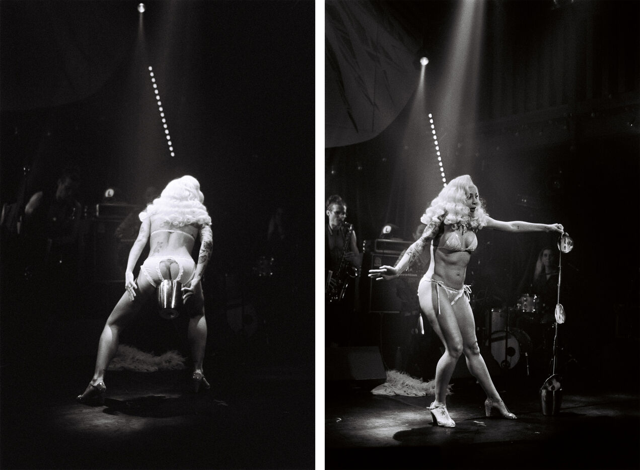 burlesque stripteases, clowns, dragqueens and kings, rappers, aerial artists and circus performers, fag and jazz singers, lost poets, bodies, songs, the unexpected...
