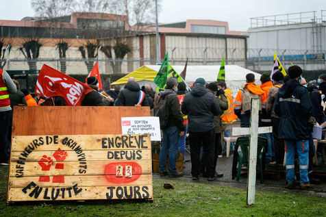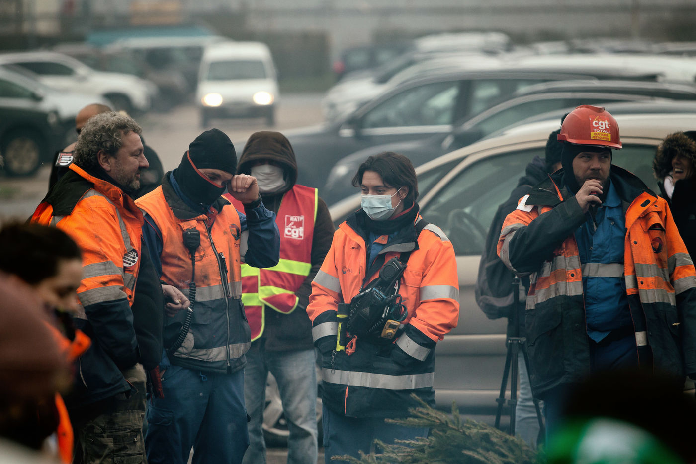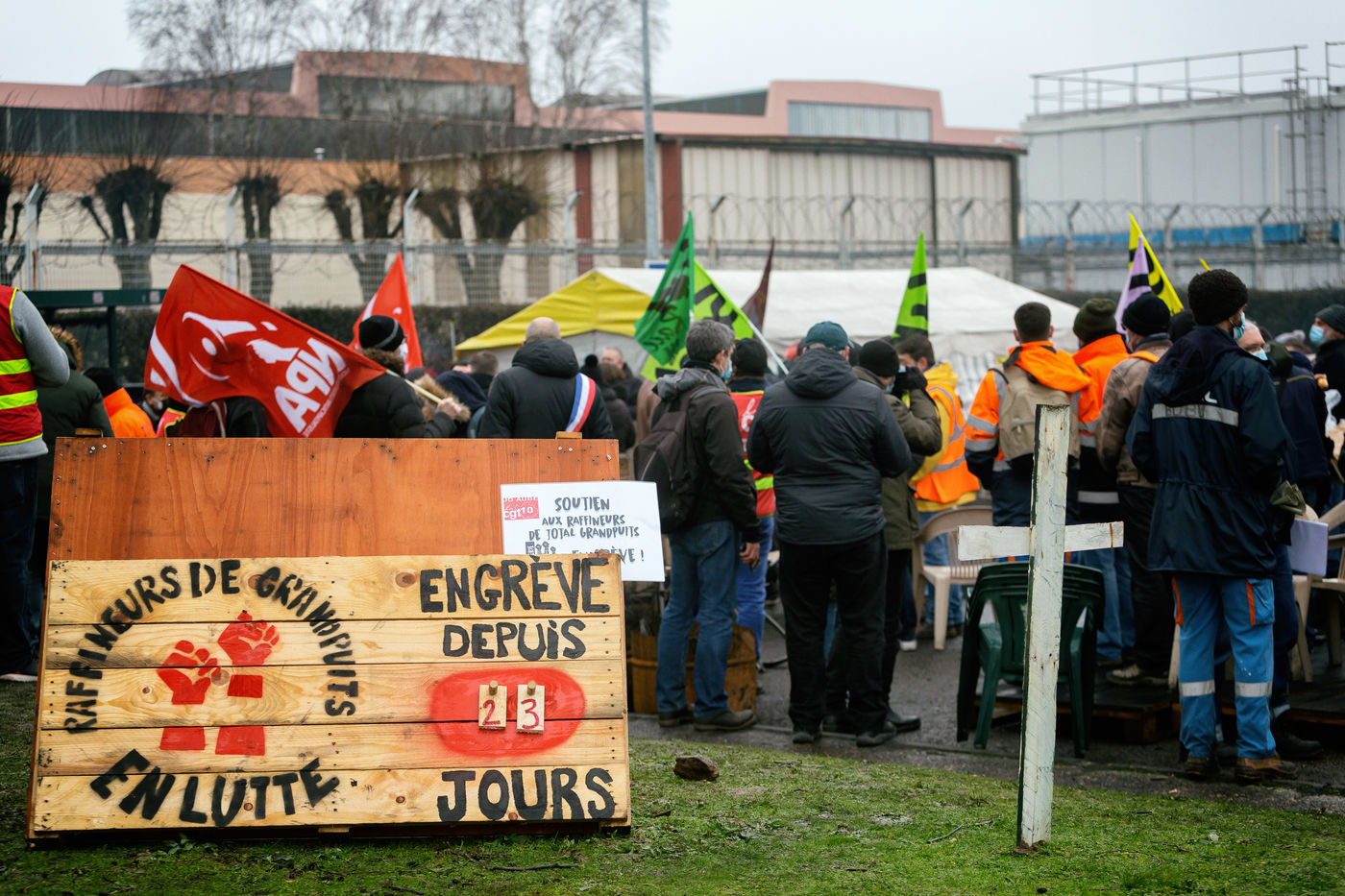 Gathering of refiners on strike against the closure of the Grandpuits site.