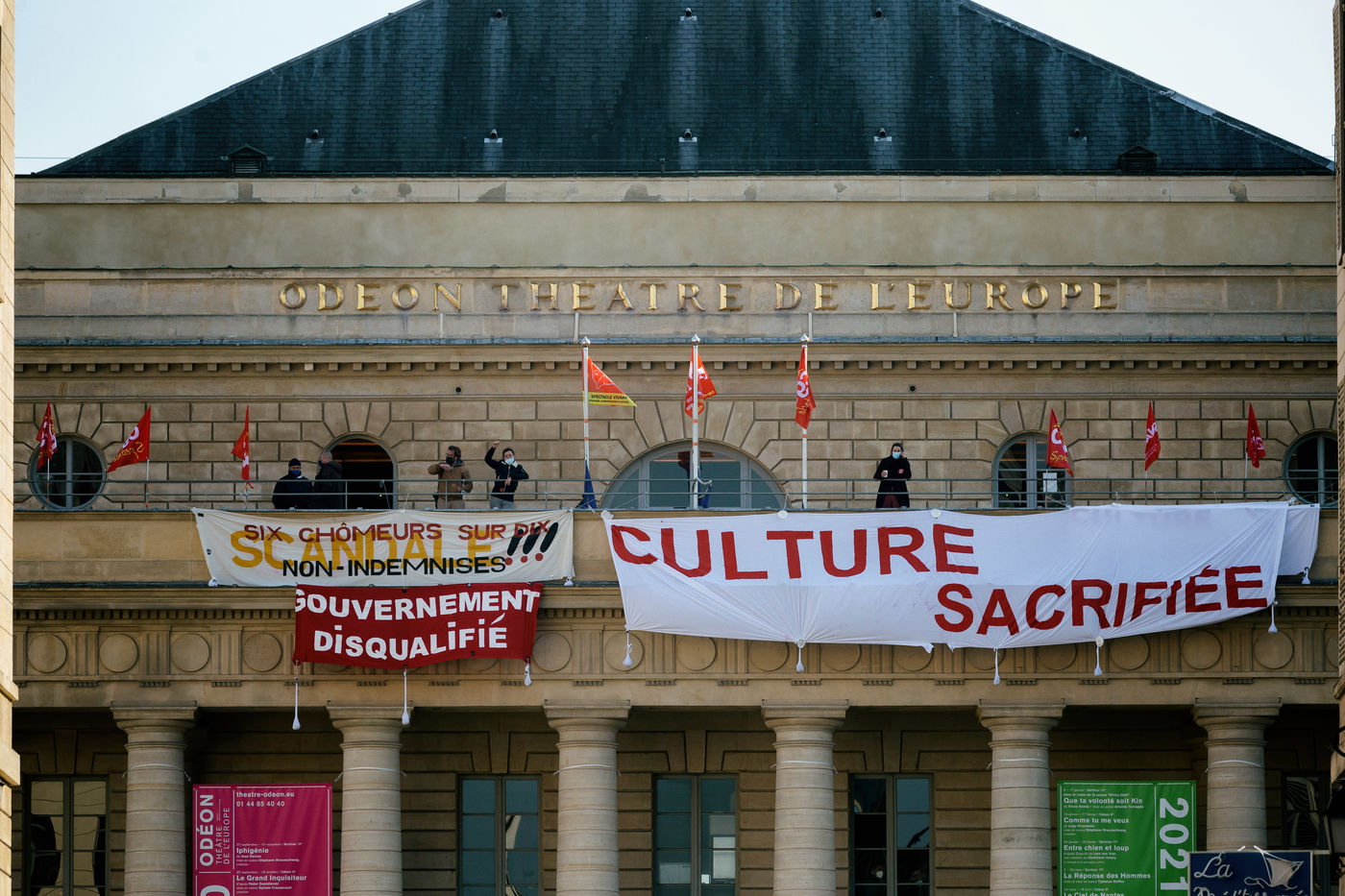 Occupation of the Odéon theatre by intermittent workers and precarious workers. They demanded the reopening of cultural venues, the abandonment of the reform of unemployment insurance, the extension of the "année blanche" (white year) for casual entertainment workers, the relaxation of the prerequisites for access to the scheme and support measures for all those in precarious employment.