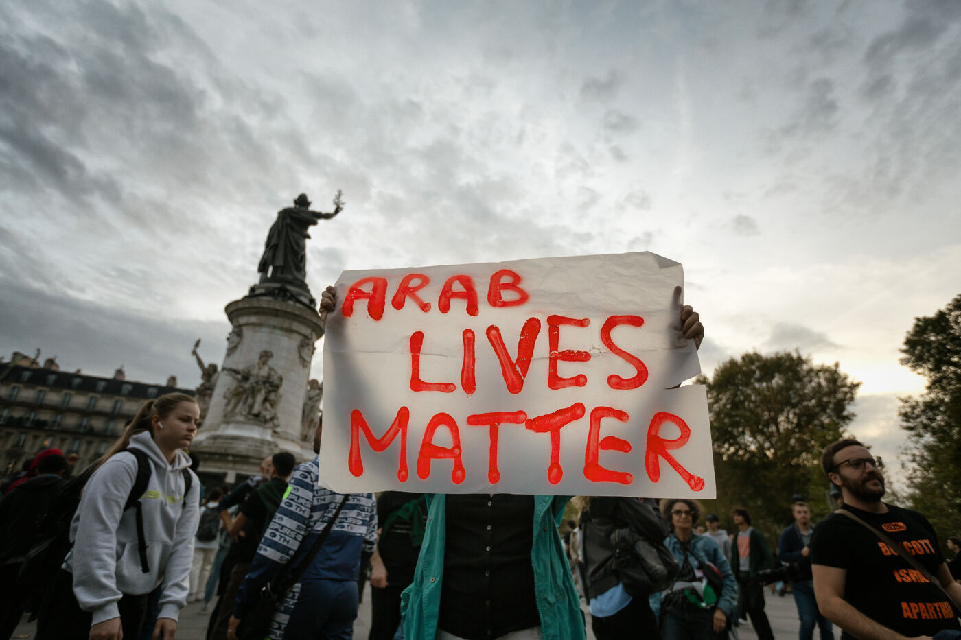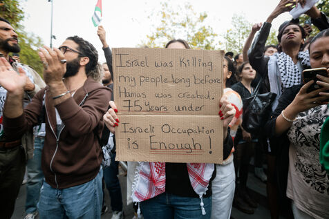 Despite the ban, hundreds of people gathered in support of the Palestinian people