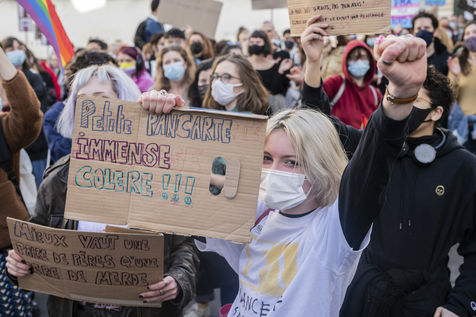 Gathering for assisted procreation for all, after the Senate voted to exclude lesbian couples and single women. Transgender people are also excluded. Paris, 21 February 2021.