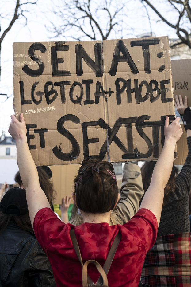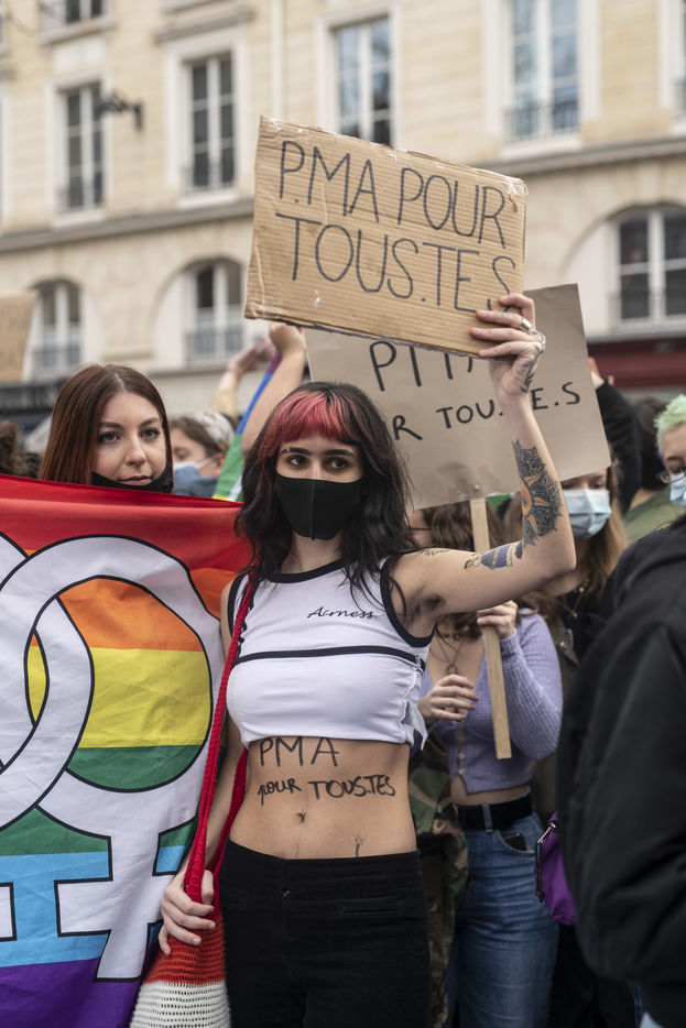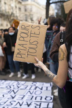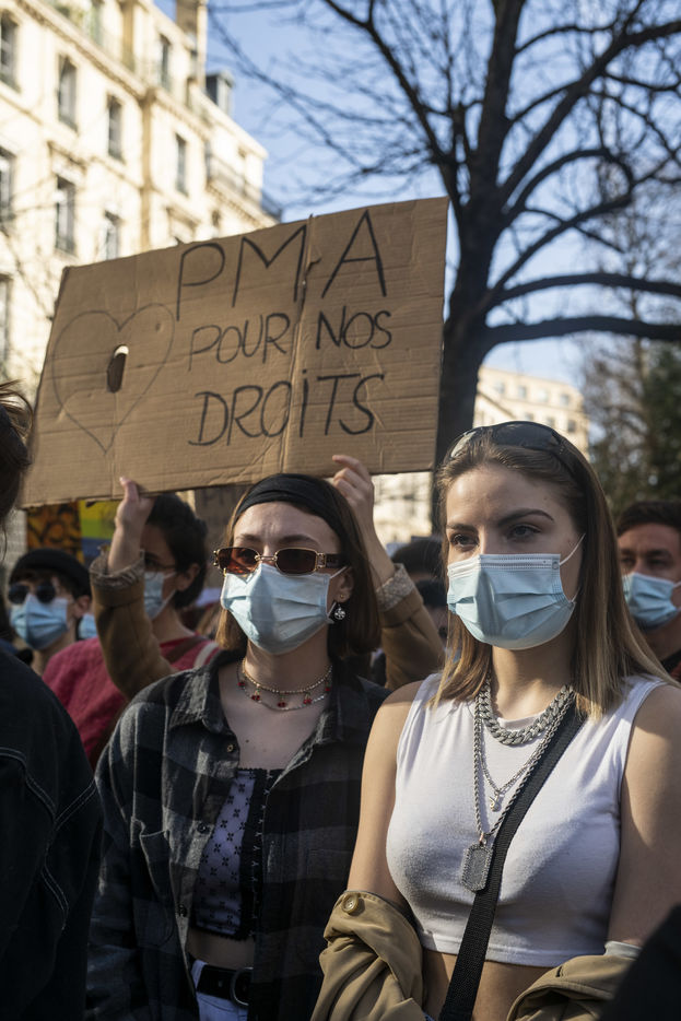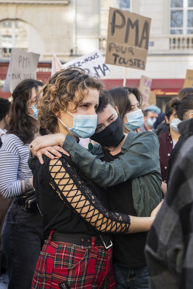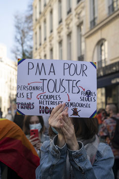 Rassemblement pro-PMA, suite au vote du Sénat supprimant l ouverture de la PMA aux couples de femmes et aux femmes seules. Paris, le 21 février 2021.