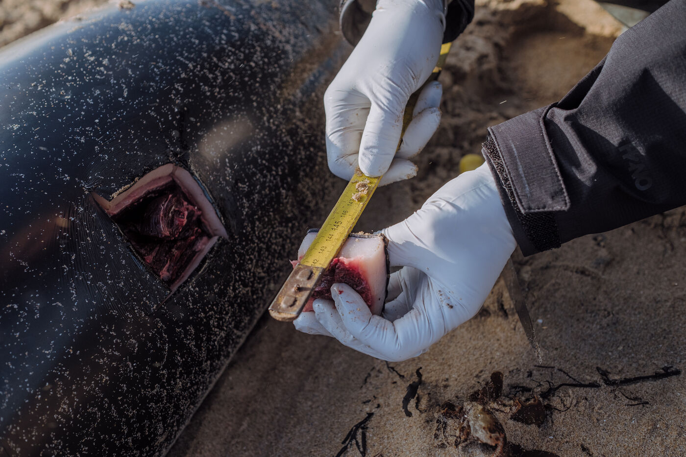 Everywhere on the French coast, correspondents of the National Stranding Network, coordinated by the Pelagis observatory and research institute, visit the sites of strandings reported by walkers. They identify the species of the stranded animal, take its measurements and photographs to document any external traces of capture (perforations, amputations, etc.), and sometimes remove its organs to send them to Pelagis for analysis, which will make it possible to better determine the cause of its death and monitor the health of the populations.