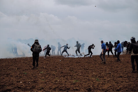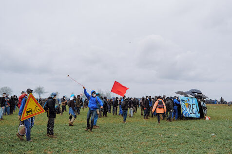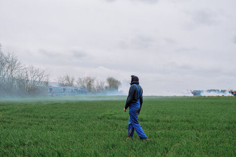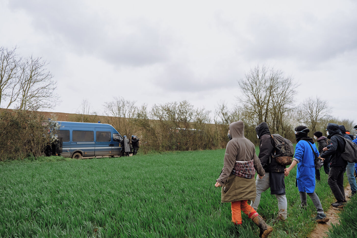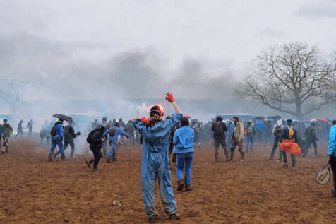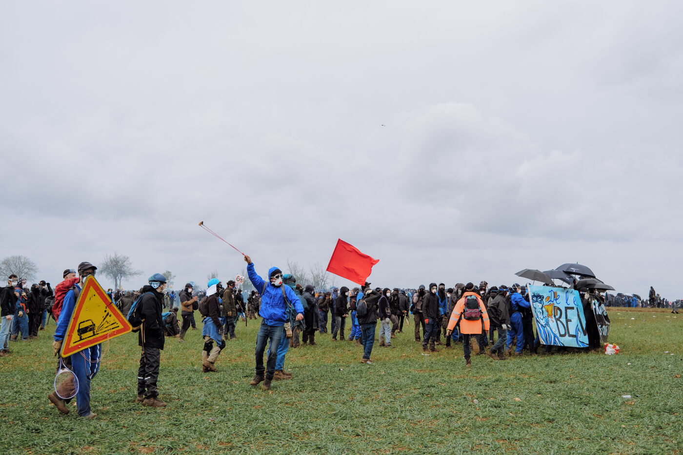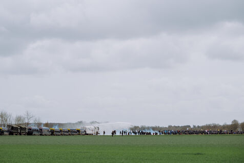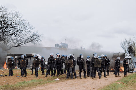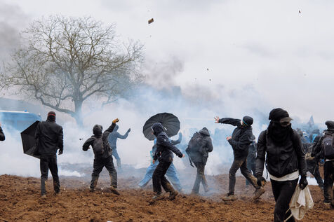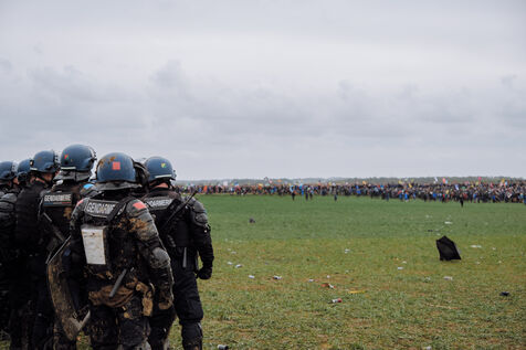 Massive mobilization against mega-basins in Sainte-Soline, on March 25th, 2023, in response to the call of the Soulèvements de la Terre, Confédération paysanne and Bassines non merci, to protect water against mega-basins, symbol of intensive agriculture that dries up the soil and destroys biodiversity. More than 20,000 people, according to the organizers, marched from the camp established in Vanzay to the basin under construction in Sainte-Soline where a heavy police force was deployed. Very violent clashes took place, with many people suffering injuries, including a demonstrator in a coma whose evacuation by the SAMU was delayed by the police.