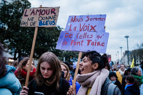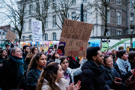 Manifestation féministe du collectif FURI, Féministes Uni.es pour une Riposte Intersectionnelle, le 8 mars 2024 à Nantes, en lutte contre le patriarcat, le sexisme, les violences et les discriminations envers toutes les minorités. F.U.R.I. est constitué de Aides, Union Handie, DisQutons, la CLAC, Féministes Révolutionnaires Nantes, Nosig, Nous Toutes 44, Paloma, Colleu.x.se.s Nantais.es et le Planning Familial 44.