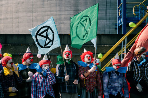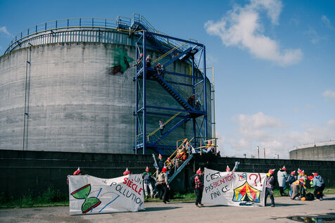 Extinction Rebellion fête les 100 ans de Total à la raffinerie de pétrole de Donges le 23 mars 2024. Plus de 50 activistes venus de Nantes et de toute la France se sont facilement introduits sur le site classé Seveso seuil haut de la deuxième plus grande raffinerie de France. Déguisés en clowns, les activistes sont venus dénoncer les 100 ans de Total en montant un chapiteau de cirque au pied d'une cuve qu'ils ont aspergée de peinture (à l'eau), en chantant et en dansant, avant un die-in sous l'effet de (faux) pétrole renversé sur eux par un clown déguisé en Patrick Pouyanné, PDG de l'entreprise. La fête a repris dans une énergie joyeuse et toujours non-violente sous l'oeil d'employés de la raffinerie, puis les activistes sont repartis, accueillis à l'extérieur par la gendarmerie qui a mis une personne en garde à vue, libérée le soir même.