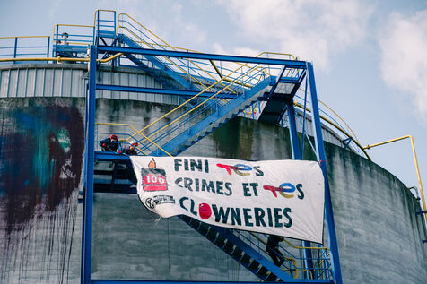 The Donges refinery, which is also almost a century old, has been shut down several times following incidents, the last time barely a month ago (and still on the day of the action) for leaks and corrosion revealed by the CGT, and the activists are concerned about air pollution and pollution of the Loire estuary. More broadly, they denounce TotalEnergies' continued exploitation of fossil fuels in the face of the climate emergency, and the company's lies to hide the consequences of its activities on global warming, known since the 1970s.