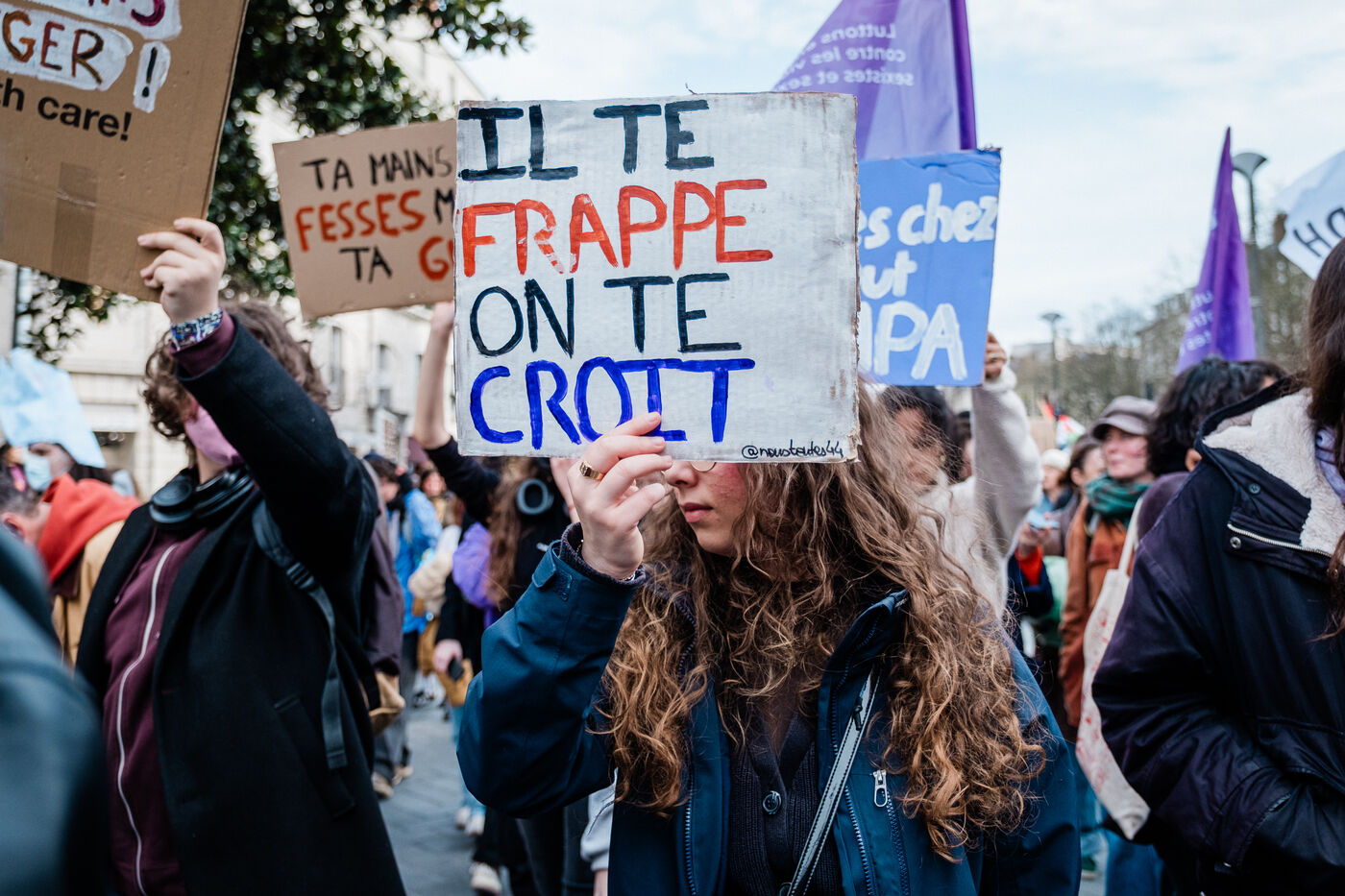 Feminist strike and demonstrations by local unions and associations, including Nous Toutes 44 and the FURI collective (Feminists United for an Intersectional Response), for equal rights and against patriarchal domination, for International Women's Rights Day.