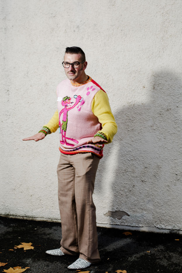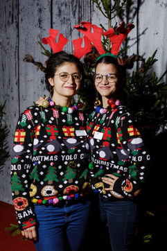 Portraits de compétiteurs lors du championnat du monde de pull moche