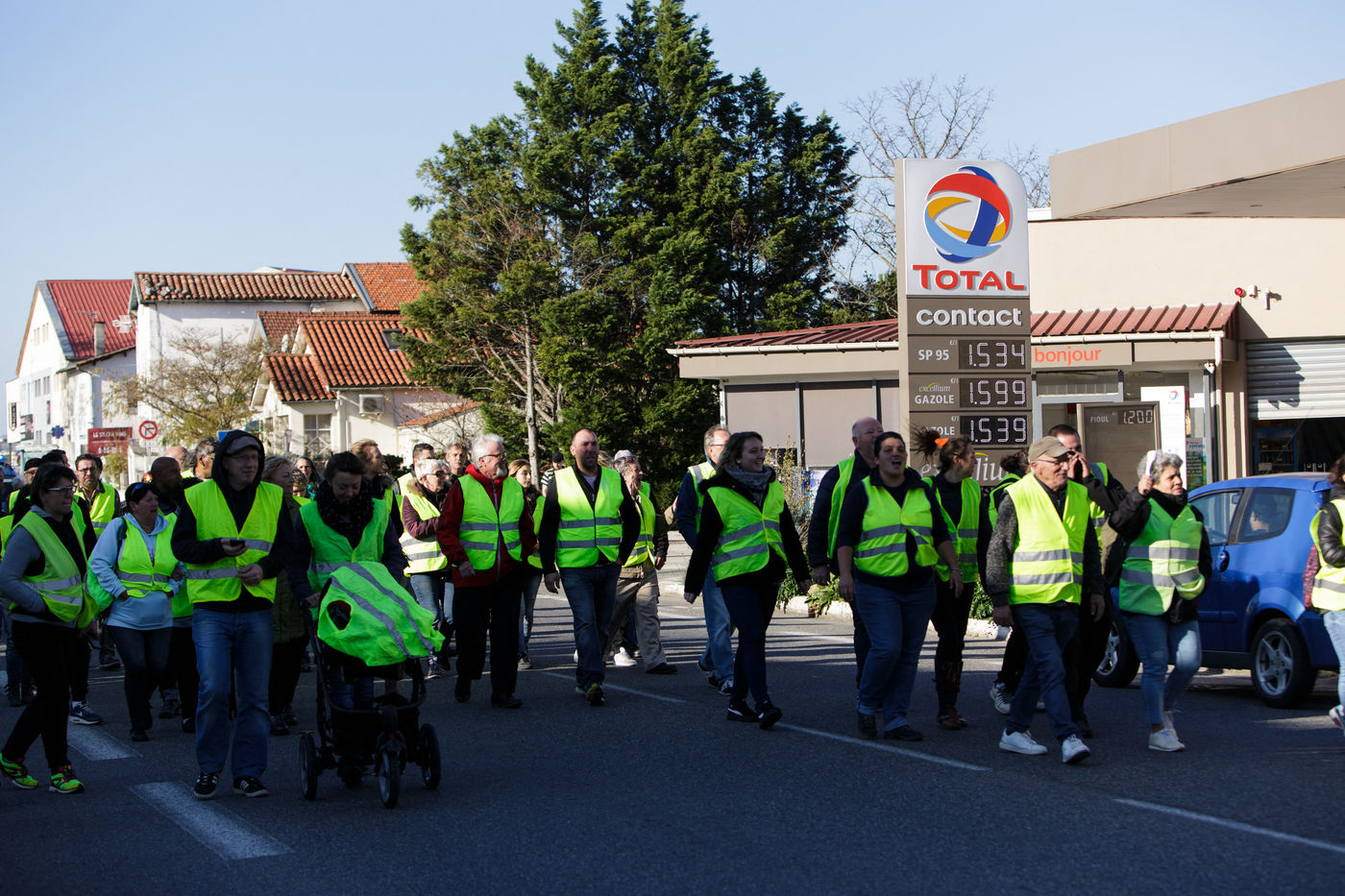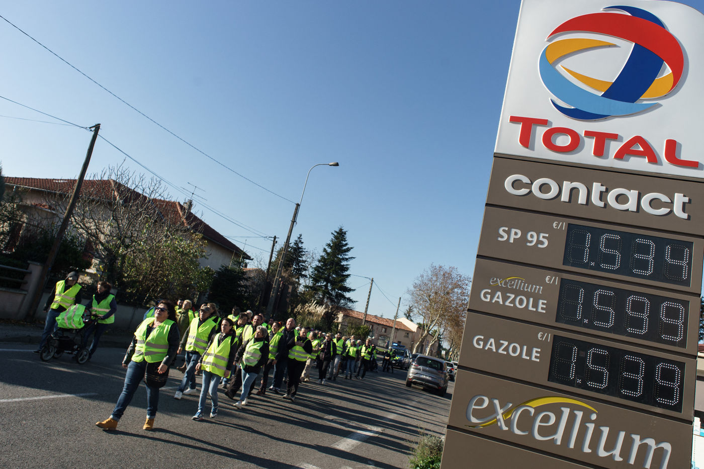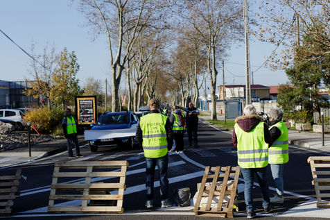 Le mouvement citoyen des "gilets jaunes" organisent des barrages filtrants aux abords des grandes villes. Ils dénoncent ainsi la hausse des taxes sur le prix des carburants, et plus largement, une baisse du pouvoir d'achat.
