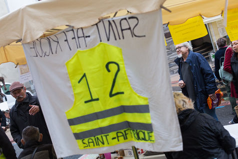 Un groupe de Gilets Jaunes sur le marché hebdomadaire de la ville, échange avec la population sur le projet de démocratie direct qu'ils mettent en place. Ce projet experimental du RIC a permis de sortir 41 propositions, dont certaines seront prochainement débattues au conseil municipal.