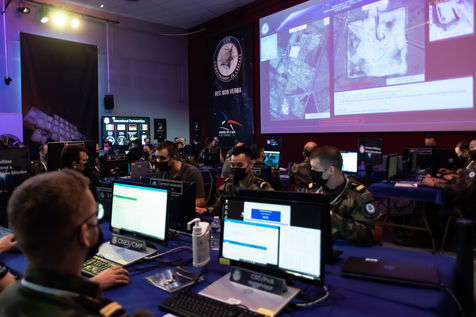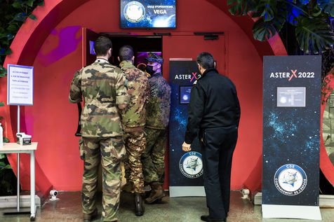 Second edition of the military space exercise AsterX led by France to ensure the security of civil and military satellites in charge of Earth observation, surveillance and telecommunications, at the Cite de l'Espace, Toulouse south west of France on 4 March 2022.