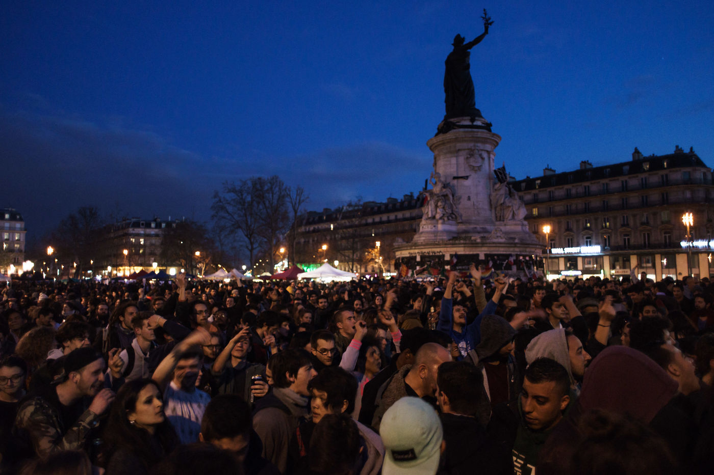 En marge du rassemblement Nuit Debout, le collectif "La Tartiflette" organise une Free Party sur la place de la République