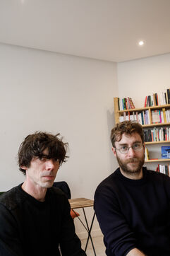 Portrait of Lorient authors Younn Locard and Florent Grouazel, in a book signing session at the Fracas bookshop in Lorient, on the occasion of the release of the second volume of their comic book Revolution. The first volume, published in 2019, received the Fauve d'or award for the best album at the Angouleme Festival 2020.