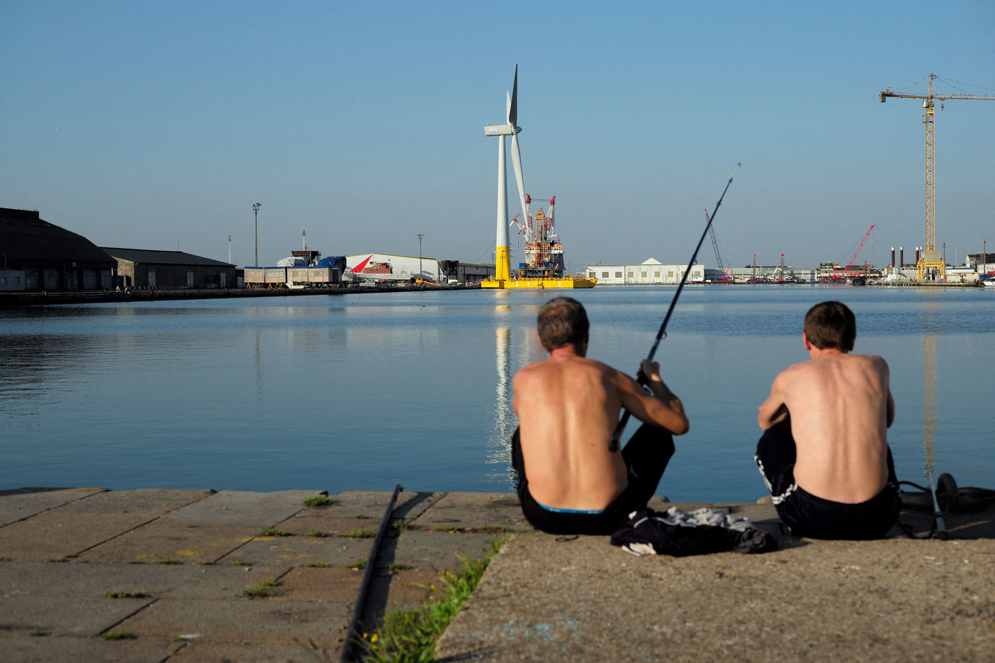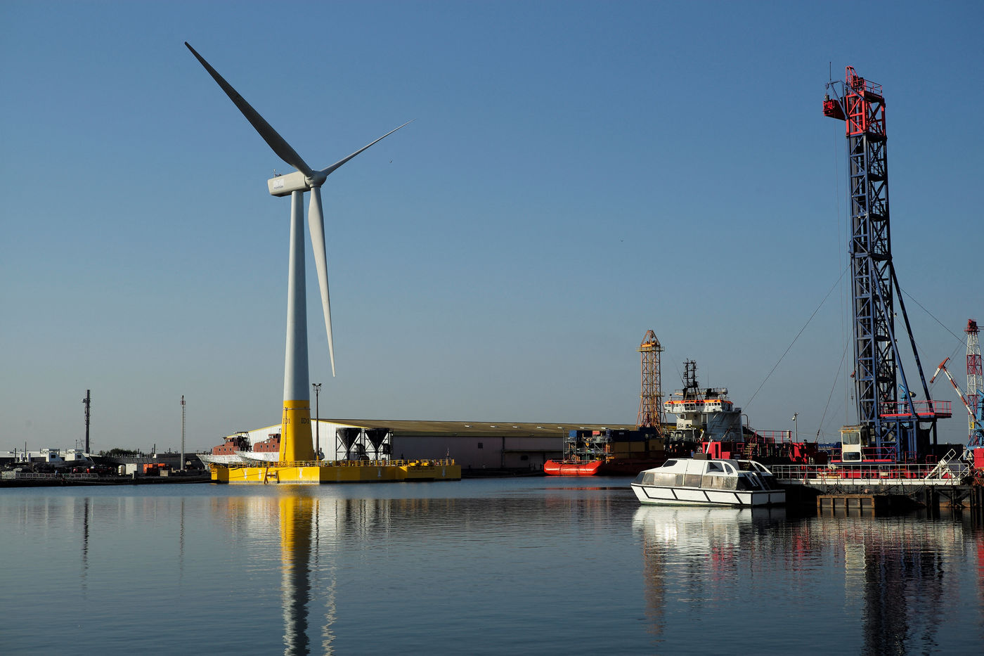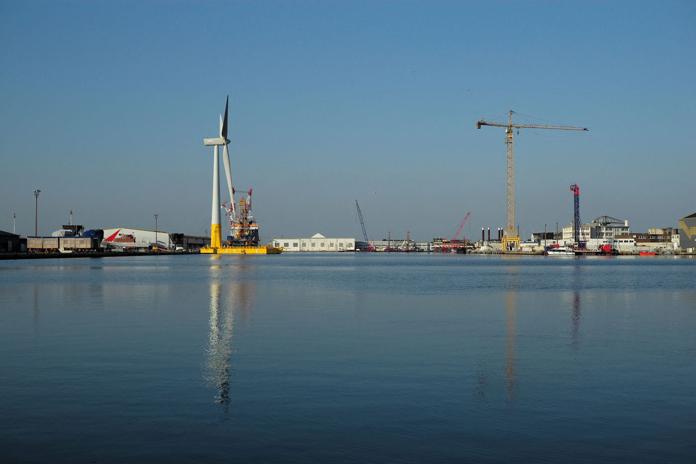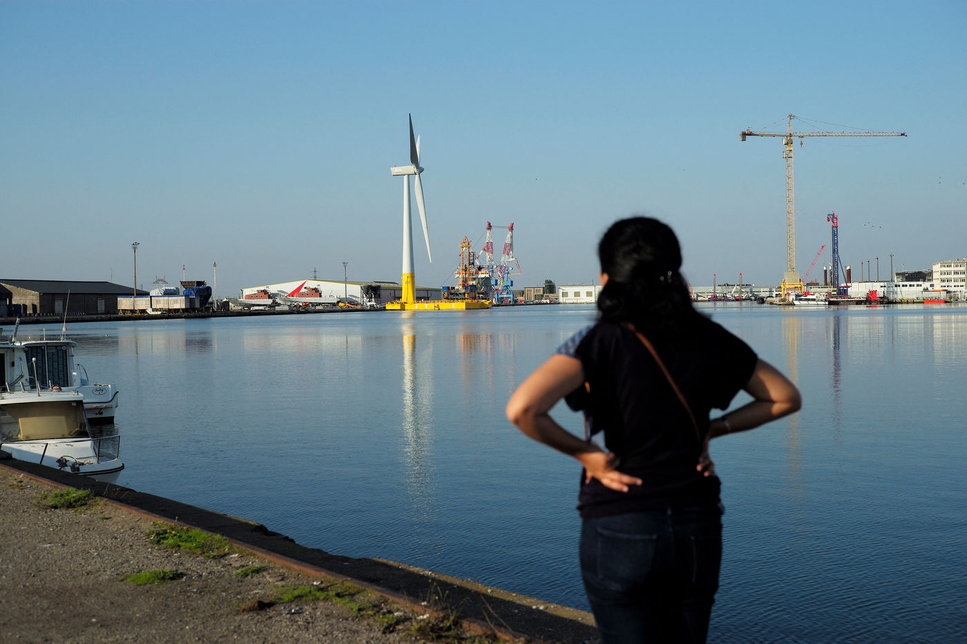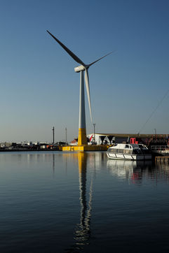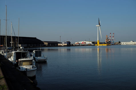La première éolienne flottante de mer en France, Floatgen ID1, dans le Port de Saint Nazaire sera déployée au large du Croisic début 2018. Saint Nazaire, le 14/10/2017.