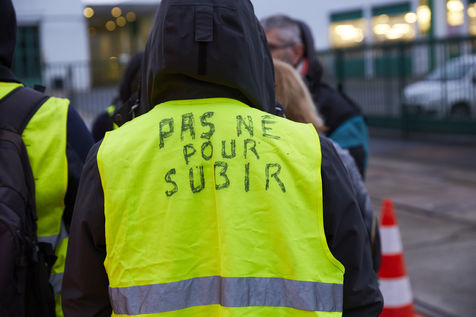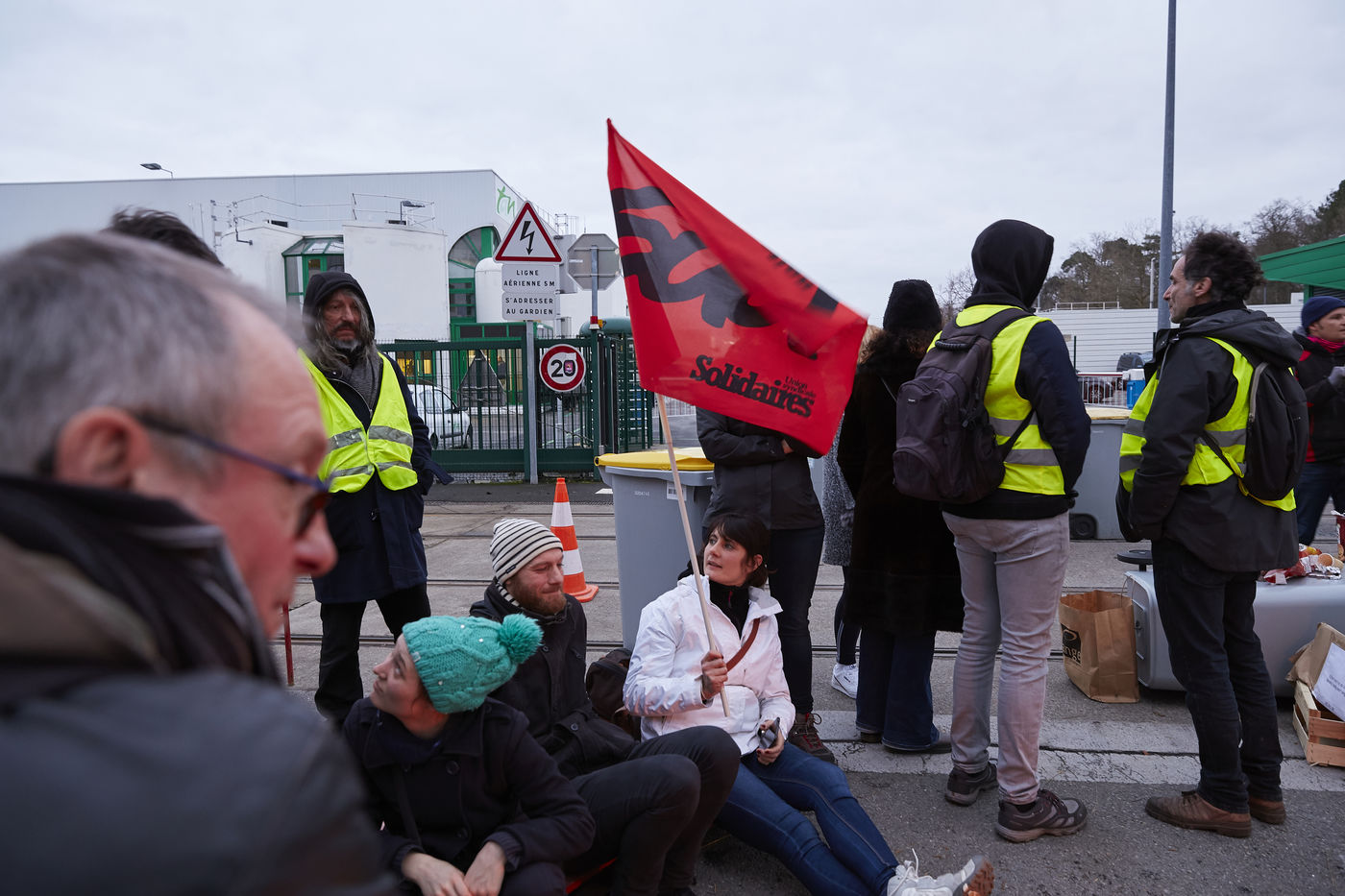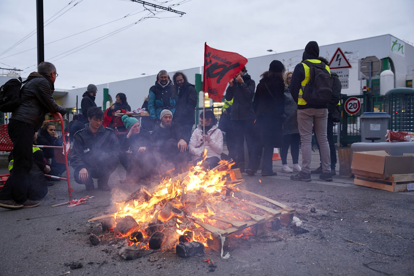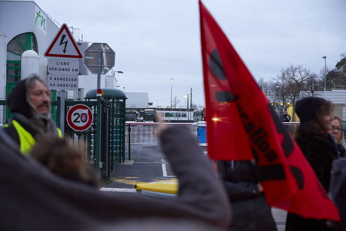 Blocage des dépôts de bus et de tram de la TAN à Nantes dans le cadre de la mobilisation conttre la réforme des retraites. Nantes, le 10 janvier 2020.