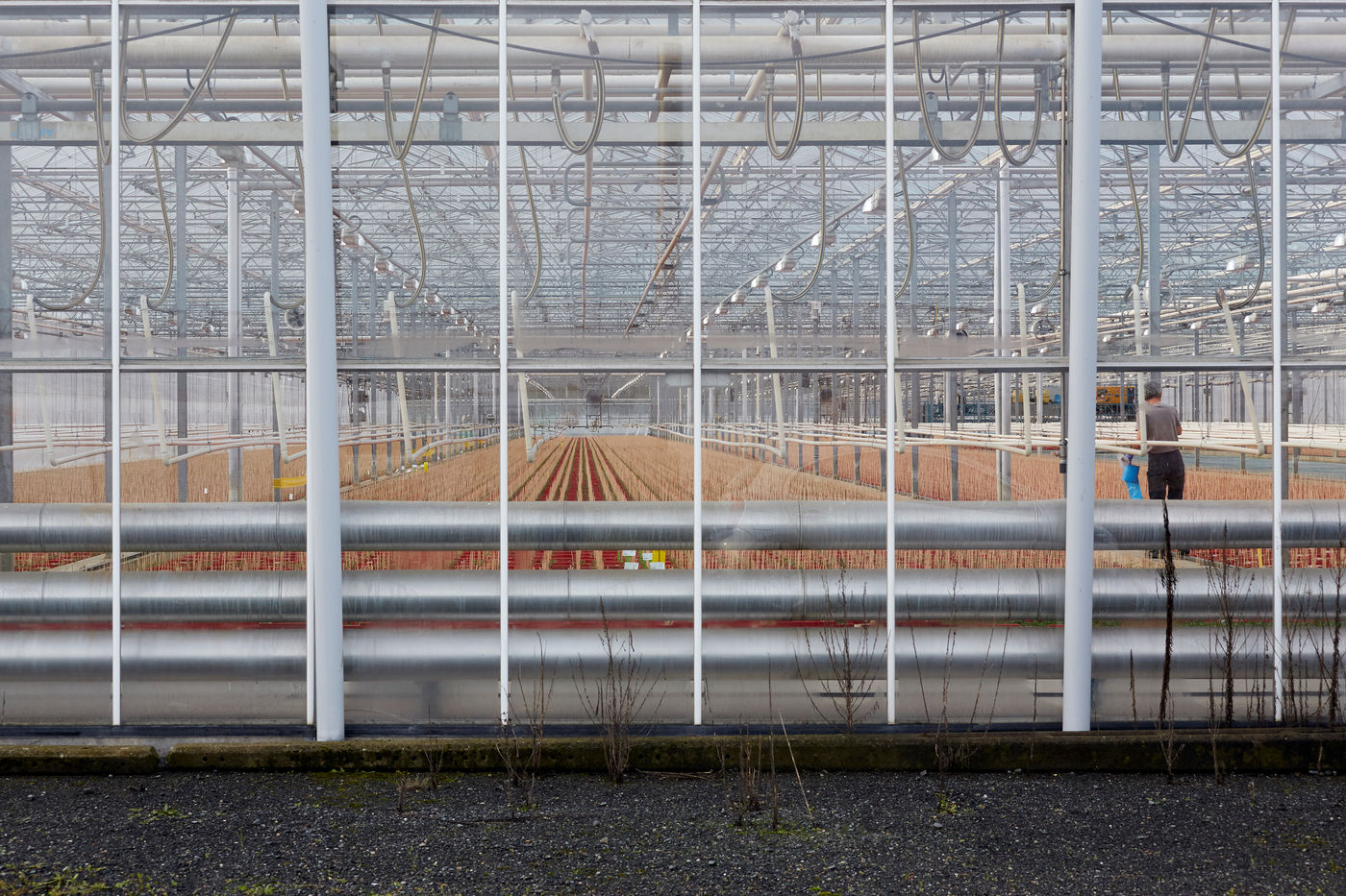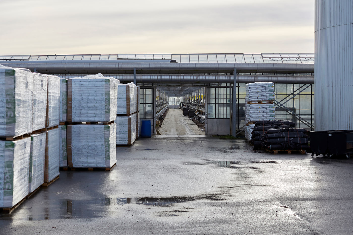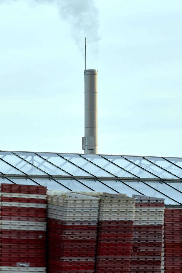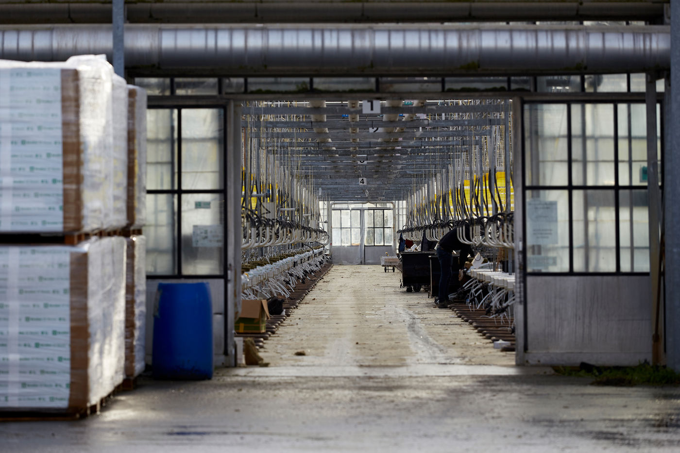 Une des nombreuses serres à proximité de la ville de Nantes. Cette agriculture urbaine et périurbaine sous serre assure une sécurité alimentaire avec un approvisionnement local des grandes métropoles dans un contexte où la crise du Coronavirus souligne les fragilités d'un modèle basé sur une logistique en flux tendu mondialisée. Cette série de photos réalisées avant le confinement illustre une agriculture intensive qui semble sortir d'un film futuriste tant elle est parfois industrialisée, automatisée... afin d'offrir sécurité alimentaire et produits compétitifs à des bassins de population densément peuplé. Mais à quel prix et coût écologique ?