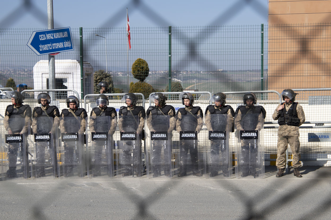 During the fifth hearing of Gezi trial on January 28, 2019 in Istanbul, lawyers take a break outside the Silivri courthouse. Sixteen leading Turkish civil society leaders are accused of seeking to overthrow the government during the "Gezi Park" protests of 2013.