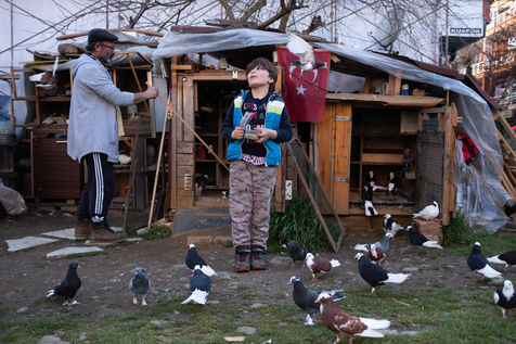 Yalcin Karci, 50, raises mainly Selanik Donek pigeons, which means Thessaloniki turners, on a plot of land across the street from his home in Tarabya, in the heights of Istanbul. His son also likes to spend his time watching the pigeons fly, it gives him a real sense of freedom during the repeated curfews imposed during the pandemic in Turkey.