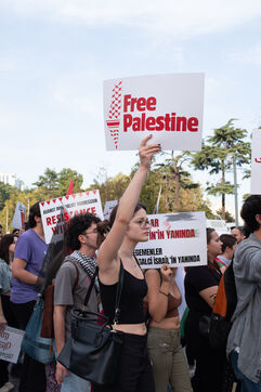 People gathered in Taksim square and marched all the way to Dolmabahce palace in Istanbul to protest against the ongoing genocide perpatred by Israel in Gaza since a year. The leftist groups which organized this march also asked for "the end of all diplotamic, military and commercial ties between Turkey and the occupaying state".