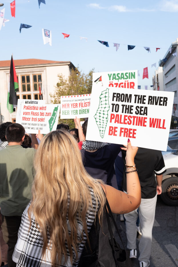 Rassemblement sur la place Taksim suivi d'une marche jusqu'au palais de Dolmabahce à Istanbul pour protester contre le génocide perpétré par Israël à Gaza depuis un an. Les groupes de gauche qui ont organisé cette marche ont également demandé « la fin de tous les liens diplomatiques, militaires et commerciaux entre la Turquie et l'État occupant ».