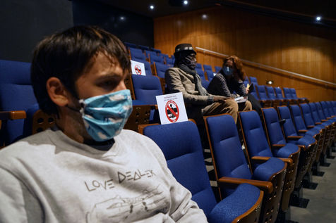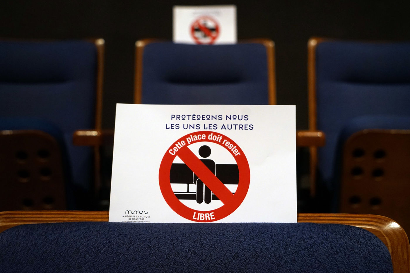 A Paris, zone classée rouge, les théâtres sont ouverts mais soumis à des règles strictes : port du masque obligatoire et séparation entre les différents groupes par une distance d'au moins un siège.