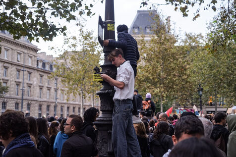 In the midst of the crisis between Isreal and Hamas and the threat to the Gaza Strip, this demonstration in support of the Palestinian people was initially banned, as were all the previous ones. Huge police presence (nasse, brav-m, water cannon etc) and then finally at 7pm, surprise, dispersal of all the police forces: the Paris administrative court suspended the prefectoral decree and the demonstration was now authorised.