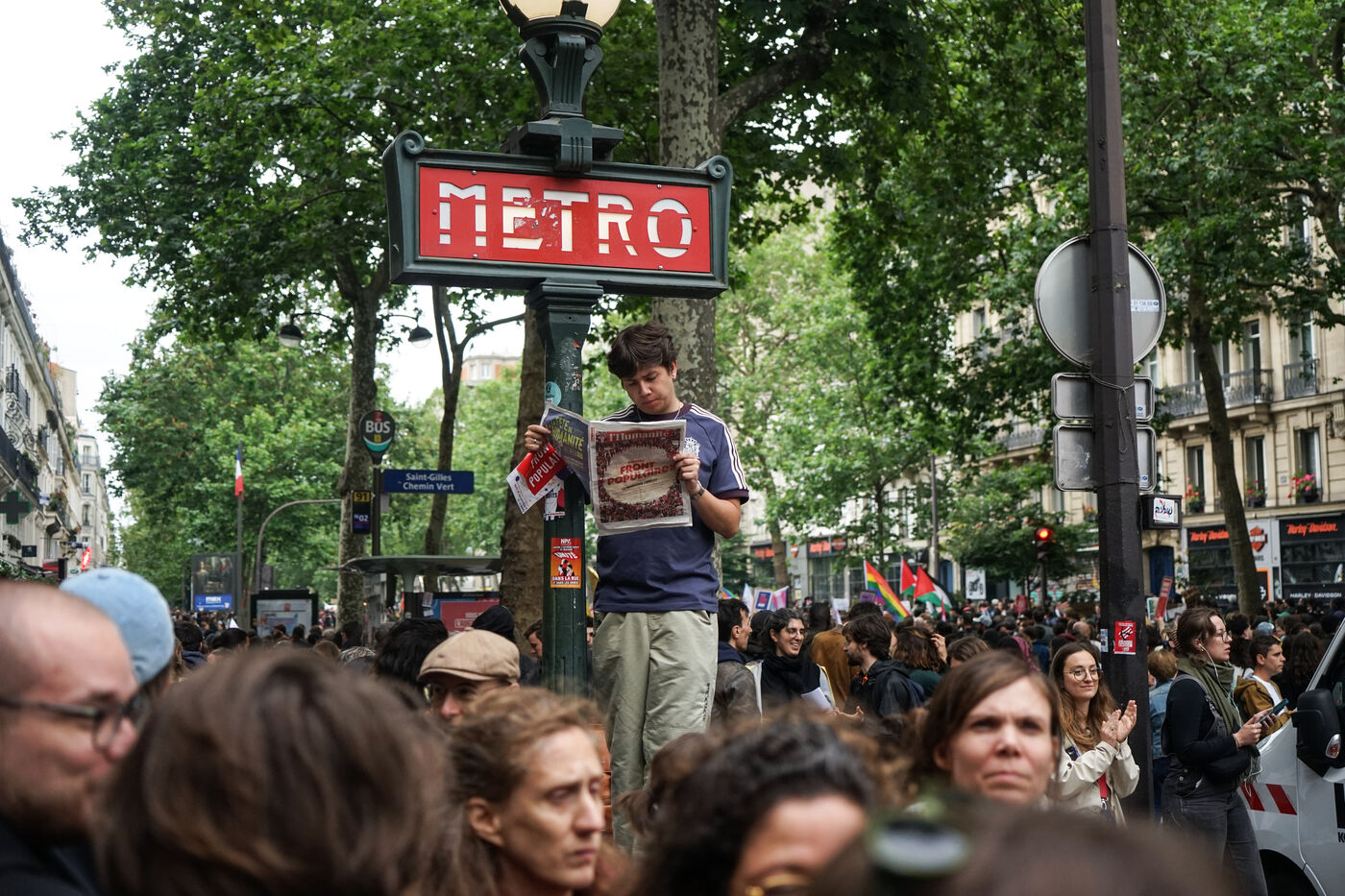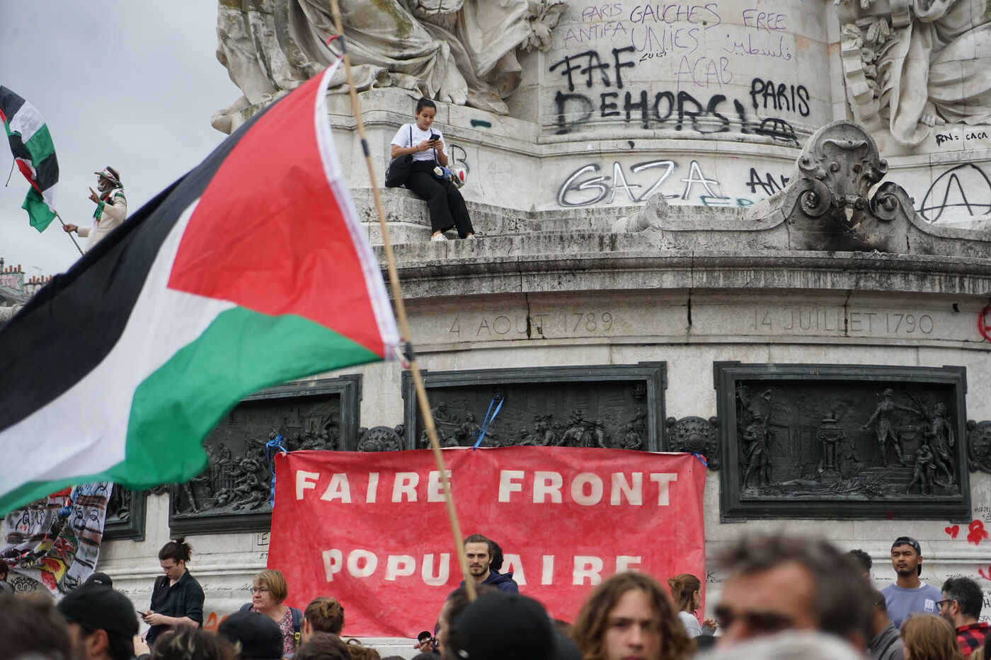 C?est dans un contexte politique tendu entre la lourde victoire du RN aux Européennes puis l?annonce de la dissolution de l?Assemblée nationale provoquant de nouvelles élections législatives que s'est tenue cette manifestation entre la place de la République et la place de la Nation.