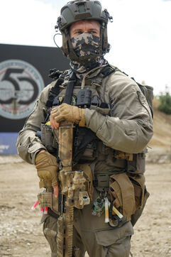 Pendant le salon ont lieu des démonstrations dynamiques des différentes forces de police, ici celle du GIGN qui simule une attaque terroriste, avec l'intervention d'un maitre chien entre autres.