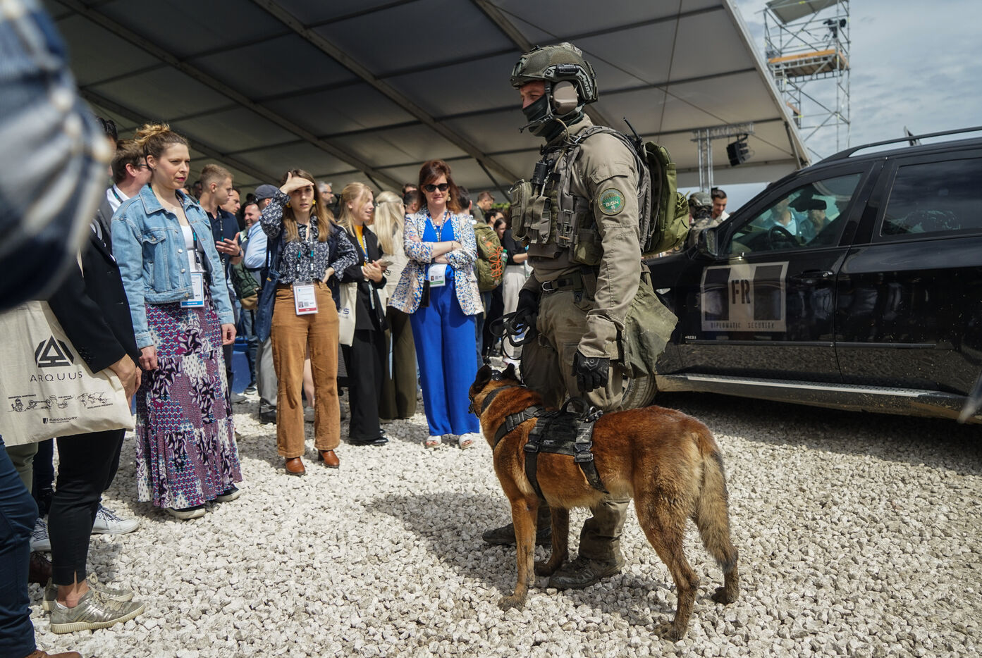 During the show, there will be dynamic demonstrations by various police forces, including the GIGN, which is simulating a terrorist attack, with the help of a dog handler.
