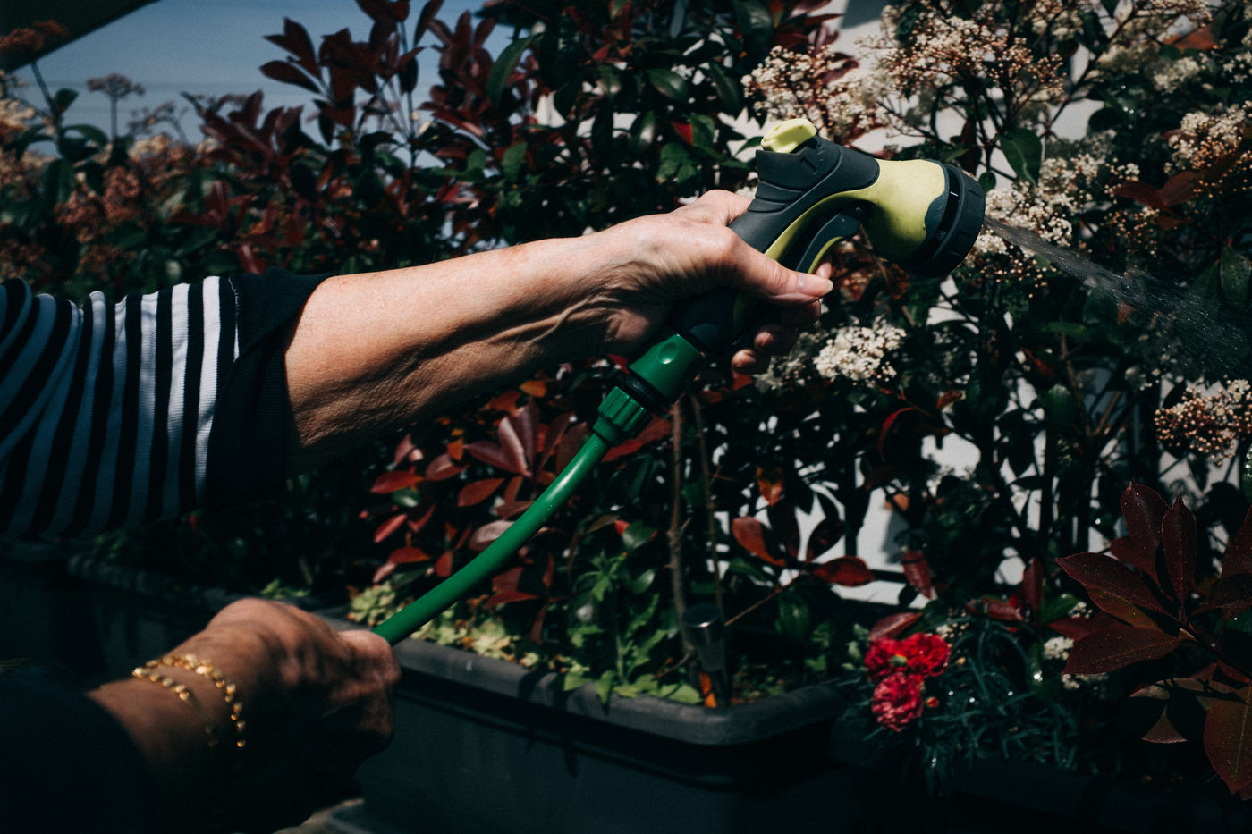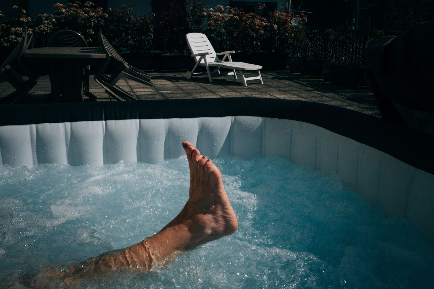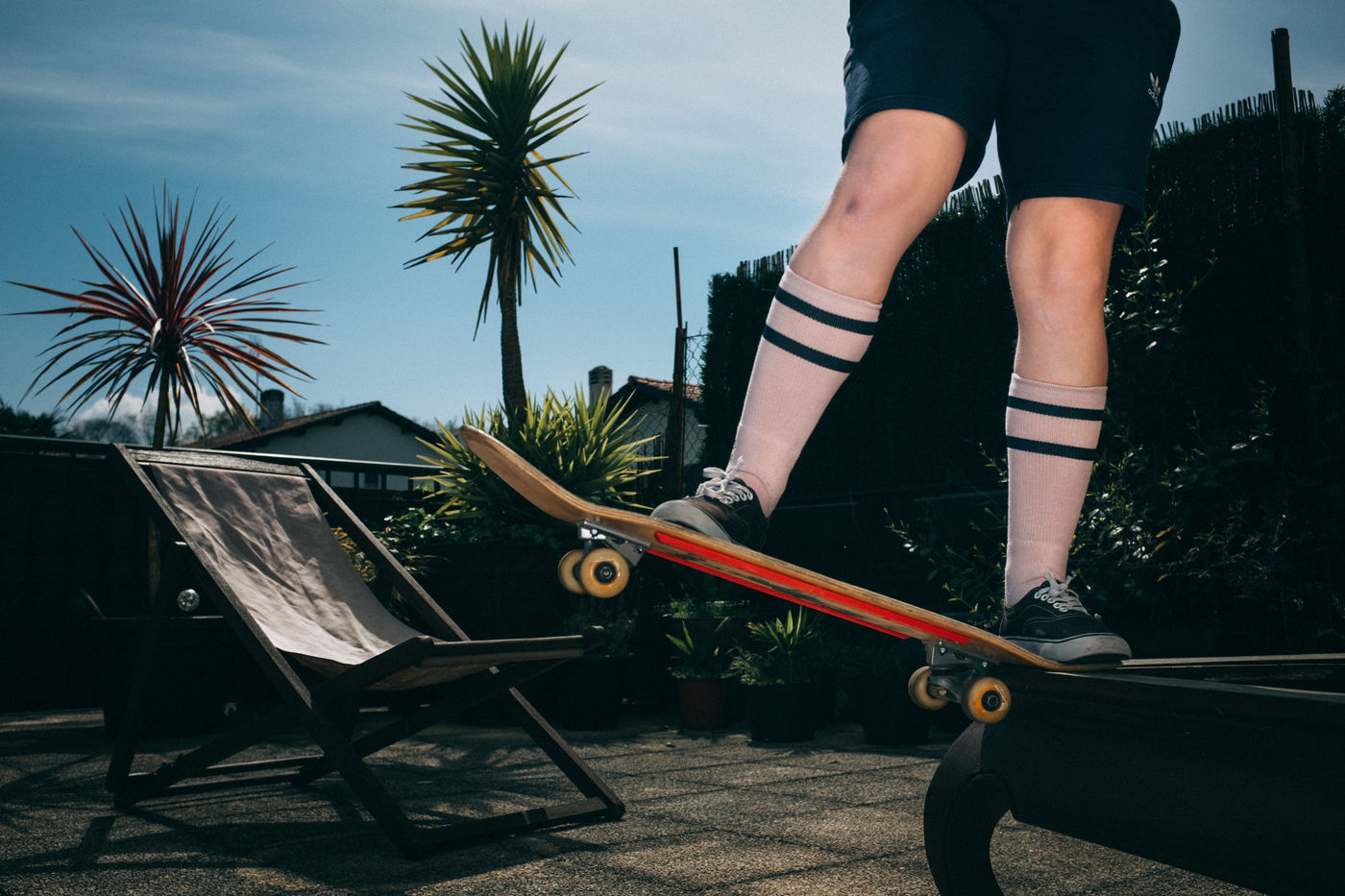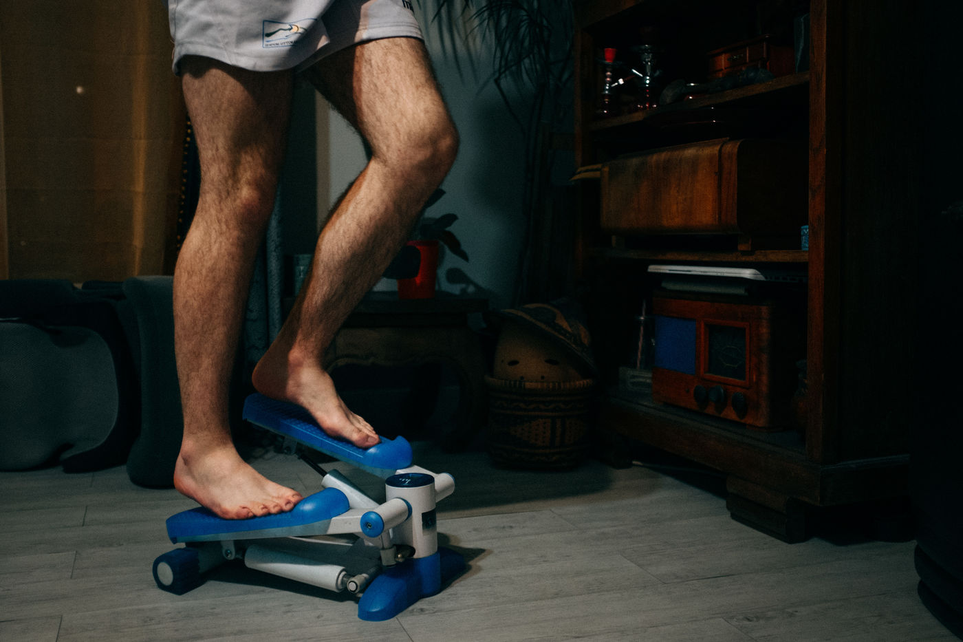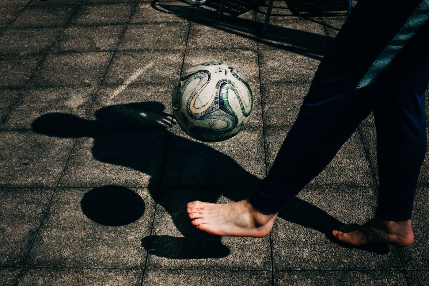 Photo series on physical activity during confinement in an apartment with terrace in Hendaye, Basque Country.