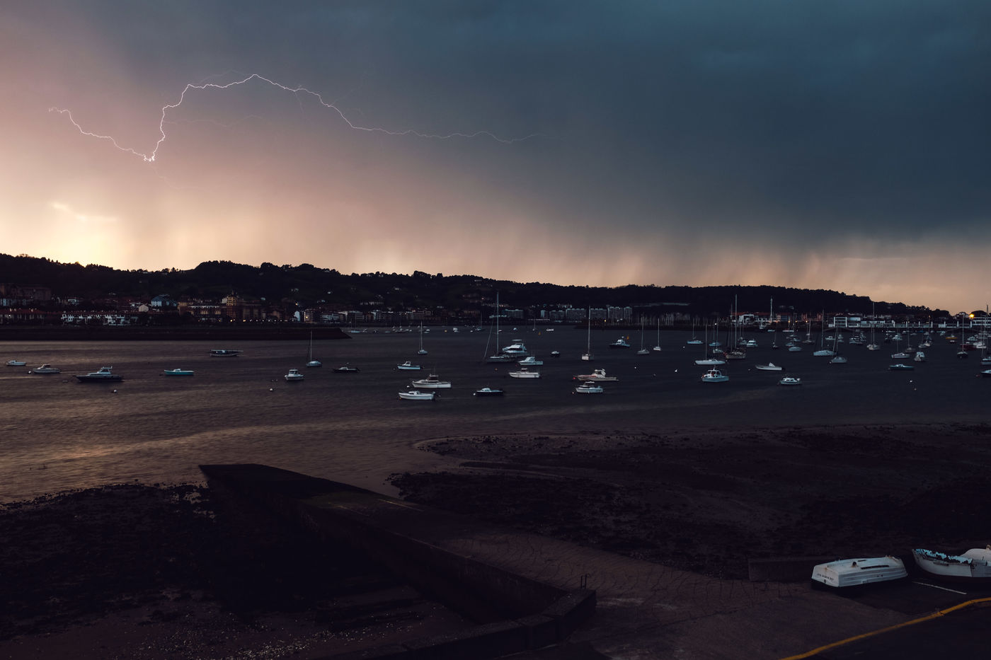Series of illustrative images about thunderstorms in Hendaye in the Basque Country.