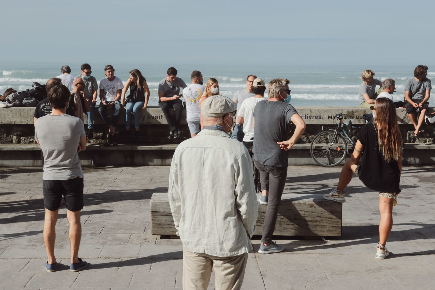 Demonstration of surfers and locals in Biarritz to protest against the ban on water sports activities, also valid for residents living less than 1km from the beach. A tolerance has continued this weekend because of the end of the vacations but apparently, from tomorrow, the screws will be tightened and the inhabitants will no longer be able to surf (among other things) and will be potentially fined up to 135euros if they violate this ban. Biarritz, November 1, 2020.