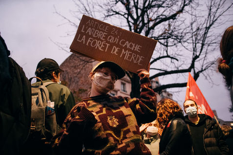 Demonstration near the National Assembly to protest against the "Global Security" law