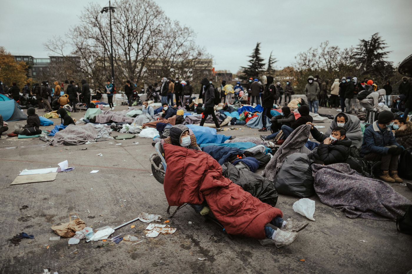L'attente a été longue ce mardi 17 novembre pour les quelque 2800 réfugiés qui ont été évacués par la police du camp de Saint Denis, où ils avaient trouvé refuge. Hommes, femmes et enfants, principalement d'origine afghane avaient progressivement trouvé un abri de fortune, faute de mieux, dans ce camp situé sous l'autoroute A1, près du Stade de France. Depuis le matin, des dizaines de bus transportaient les réfugiés vers des centres d'hébergement. Beaucoup exprimaient leurs craintes que les solutions ne soient pas pérennes et les forcent à retourner dans la rue.
