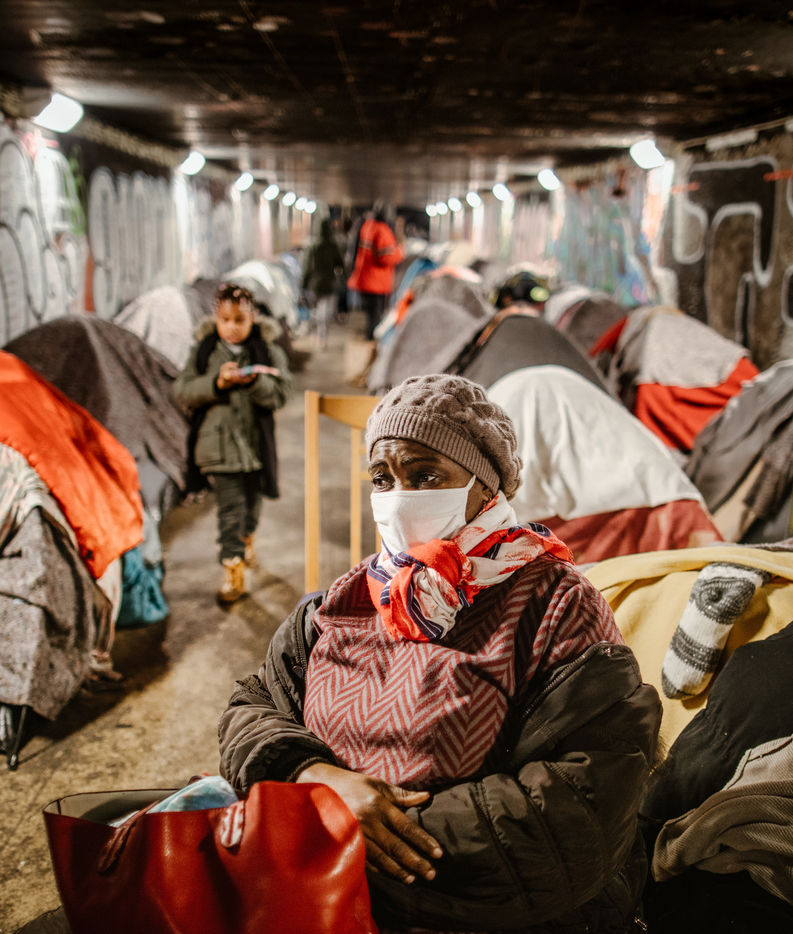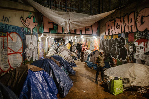 "A few weeks ago they were around 80, today I would say that they are nearly 150 including about fifteen children", testifies Fadila Benrabah, president of the association A la croisée des rue, which regularly comes to carry help to exiled families sheltered in a tunnel between Paris and Pré Saint-Gervais. This Monday, November 29, it was barely 3 degrees at night in Paris. A few young people were playing soccer outside the tunnel. Others warmed themselves around a wood fire, in a metal container. Muhammed, in his twenties, originally from Gambia, testifies to the difficulties he encounters: "I had recently been operated on for appendicitis. I was hospitalized for two days, then I had a hotel for 3 days. and now I'm back on the streets. It's very difficult for me. " At 8 p.m., the families return to the camp. Moms make their way with their strollers in the middle of the tents. Garatou, 30, testifies: "We are all tired, the cold and the fact of sleeping outside exhaust us. I am alone with my 3 and a half year old son, we sleep on the floor in the tent. no mattress. My child has lost weight, he doesn't complain like an adult, but when I see him tired, it breaks my heart ". For her part, Fadila Benrabah is indignant at the presence of babies in the camp: "there are babies with diapers who drink milk. We have to bring thermos of hot water so that they can drink their bottles. ". Families exiled from the tunnel depend entirely on associations which provide them with food aid. That evening, the volunteers of Utopia56 were distributing blankets. Despite a demonstration Sunday, November 28 at Pré Saint-Gervais to alert the authorities, for the moment no shelter solution has been found. Families always sleep outside.