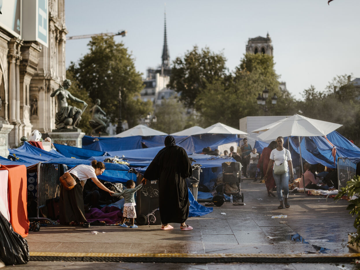 More than 250 people, mostly families and single women living on the streets with their children, have been camping for a week in front of Paris City Hall in an effort to find decent accommodation. Most of the families are being supported by the Utopia56 association. In Paris, as in other major French cities, the encampment of exiled people reflects the lack of political will to provide dignified accommodation, perpetuating the cycles of setting up camps, expulsions, or sheltering in a system that is always undersized compared to real needs.