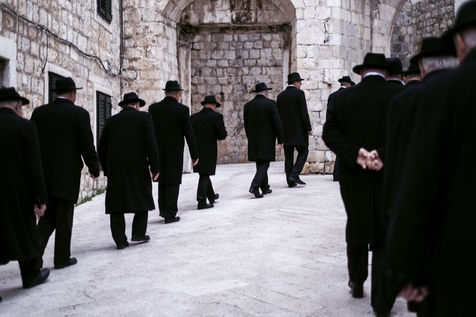 Some men are dressed in black suits with black hats at the Saint-Blaise festival.