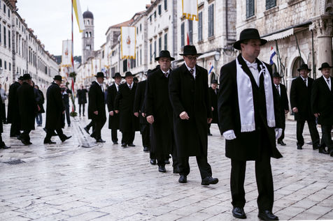 Après les tirs de fusils, une procession dans les ruelles de Dubrovnik a lieu.