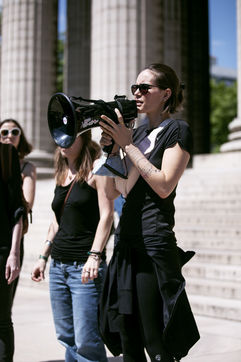 Action militante féministe à la Madeleine suite à l'annonce du nouveau gouvernement.