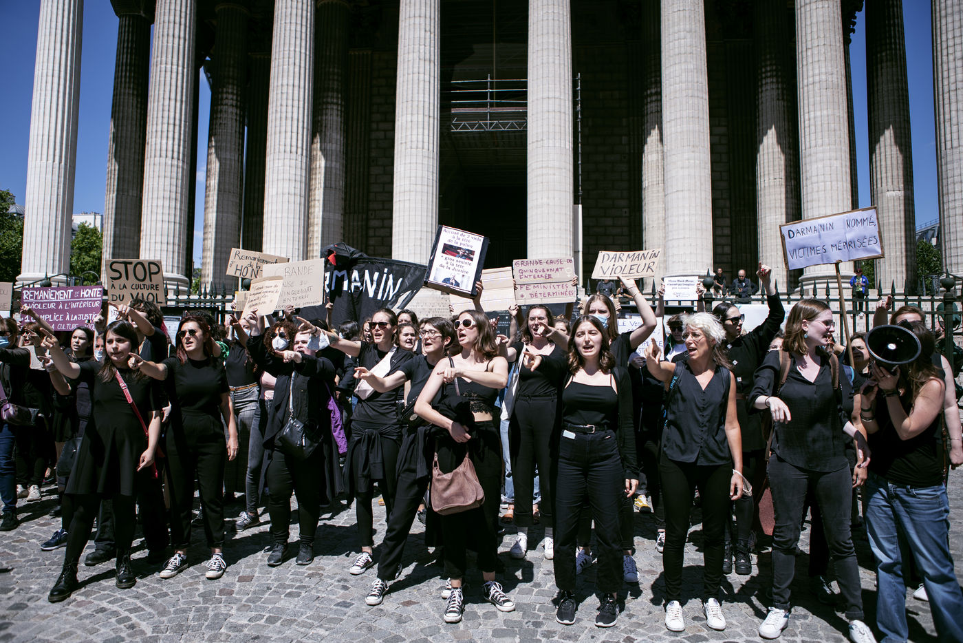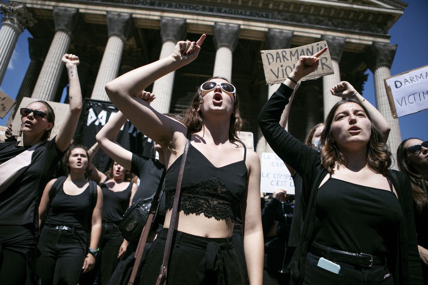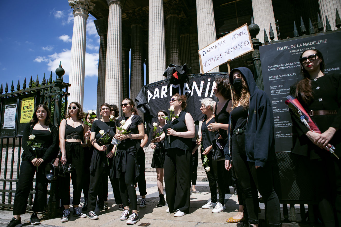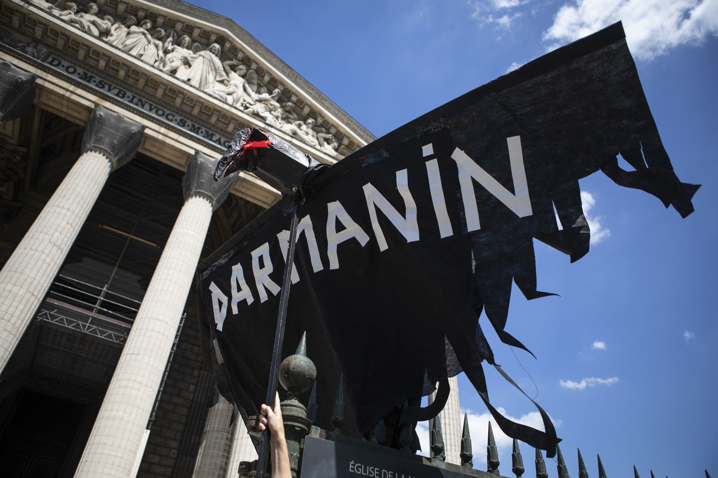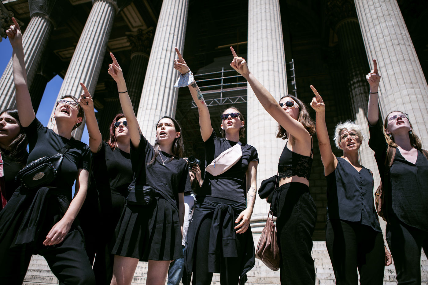 Feminist activist action at the Madeleine following the announcement of the new gournement.