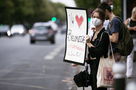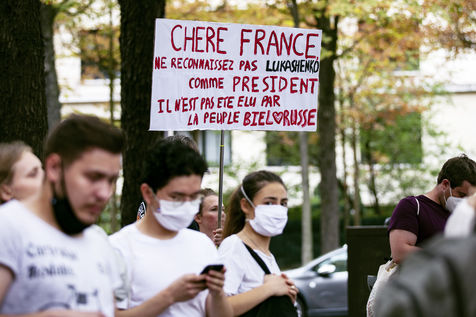 Les Biélorusses de France se réunissent à Paris près de l'ambassade du Bélarus pour exprimer leur désaccord avec la violence du dictateur Lukashenko réélu récemment. Ils commémorent également le manifestant tué lors des protestations du 10 août à Minsk.